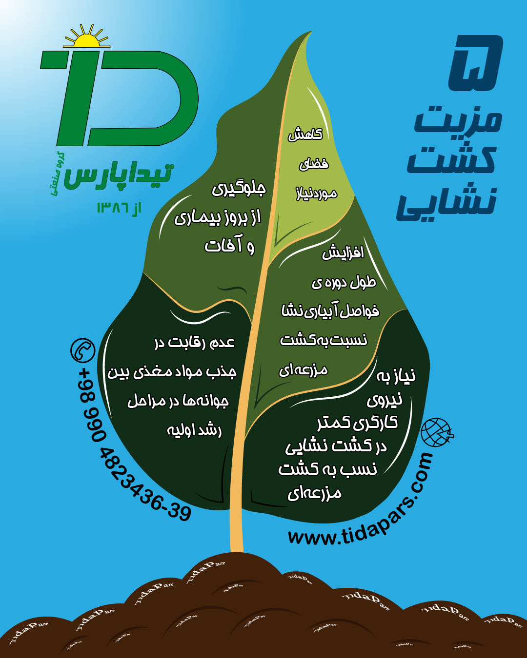 این ها نمونه هایی از مزایای پرورش نشا و کشت نشایی بود که ذکر شد. در دنیا کشت نشایی جایگاه والایی دارد. در ایران هم این شیوه کشت به سرعت درحال گسترش بوده و شاهد احداث گلخانه های تولید نشا در سطوح وسیع می باشیم. تیدا تولید کننده تخصصی ماشین های گلخانه هدف خود را بر رشد و توسعه این ماشین های نهاده و همواره تولیدات جدیدی را به گلخانه داران گرامی عرضه می کند.